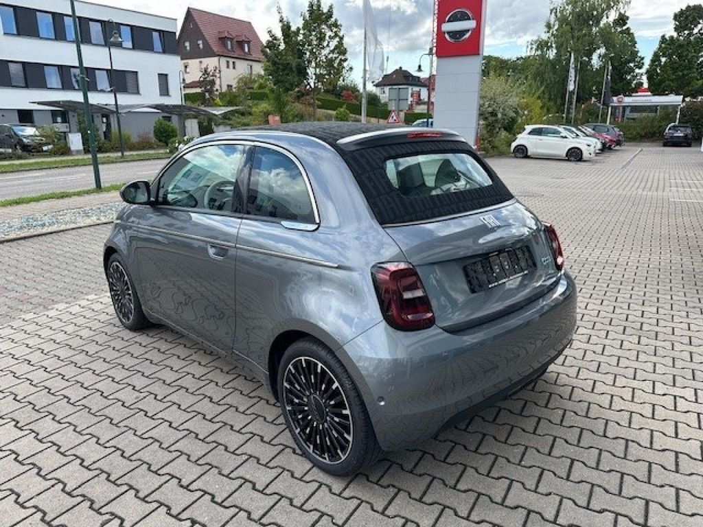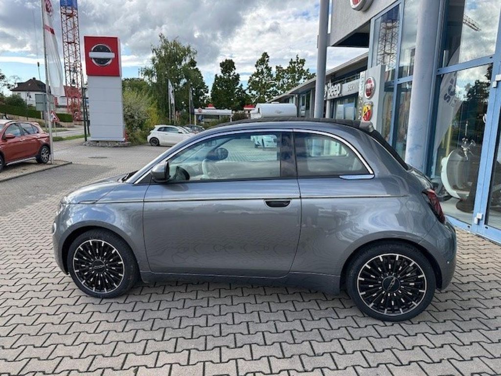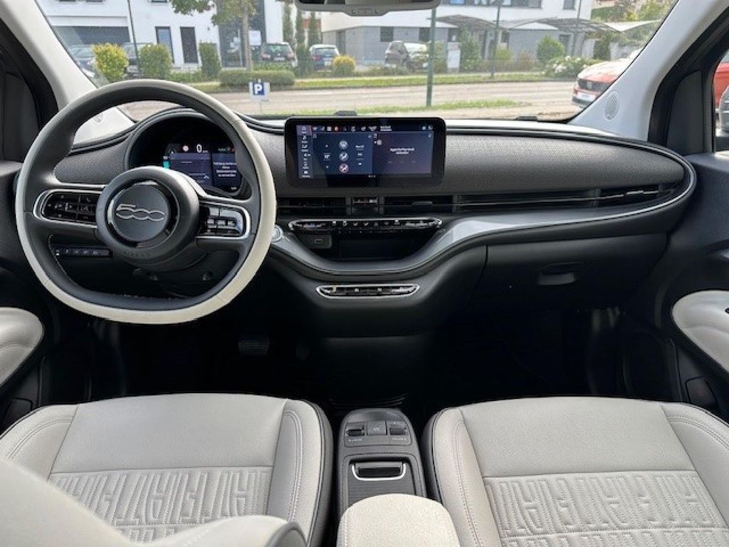 Airbag Fahrer-/Beifahrerseite Ambiente-Beleuchtung Antriebsart: Frontantrieb Antriebs-Schlupfregelung (ASR) Armaturenbrett farbig Audiosystem: Premium - HiFi-Anlage von JBL Außenspiegel elektr. verstell- und heizbar, beide Autom. Begleitfunktion der Beleuchtung (Follow me home) Beifahrerairbag abschaltbar Einparkhilfe hinten Einstiegsleisten (verchromt) Elektromotor 87 kW (cont. 43 kW) Elektron. Stabilitäts-Programm (ESP / ESC) Fahrassistenz-System: Aufmerksamkeits-Assistent Fahrassistenz-System: Autonomer Notbrems-Assistent (AEB) Fahrassistenz-System: Autonomes Fahren Level 2 Fahrassistenz-System: Bremsassistent Fahrassistenz-System: Fernlichtassistent Fahrassistenz-System: Spurhalteassistent Fahrassistenz-System: Stauassistent Fahrassistenz-System: Totwinkel-Assistent Fahrassistenz-System: Verkehrszeichenerkennung Fahrmodusschalter Fahrzeugschlüssel in Stein-Optik Fensterheber elektr. vorn mit Komfortschaltung Fensterzierleisten verchromt Fernbedienung für Zentralverriegelung und Verdeck Fiat Co-Driver-Paket Plus Fußmatten La Prima Geschwindigkeits-Regelanlage (Tempomat) Getriebe für Elektrofahrzeug Handschuhfach beleuchtet Heckleuchten LED Heckscheibe heizbar HV-Batterie 42 kWh (Lithium-Ionen) Induktionsladeschale für Smartphone (Wireless Charging) Infotainment-System: UConnect 5 mit Navigationssystem, DAB+ und Bluetooth-Freisprecheinrichtung (Touchscreen 10,25") Instrumentenanzeige Farbdisplay, 7 Zoll Karosserie: 2-türig Keyless-Entry & Go Klimaautomatik Kopf-Airbag-System vorn Kopfstützen hinten Ladekabel mit Schukostecker (Mode 2) Lenkrad (ecoLeder, 2-farbig) Lenkrad mit Multifunktion Lenksäule (Lenkrad) höhenverstellbar LM-Felgen 7x17 (Diamantfinish) Mittelarmlehne vorn Mobile Online Dienste UConnect Live Nebelschlussleuchte Notrufsystem (eCall) One Pedal Drive (elektronisches Gaspedal) Parkbremse elektrisch Radioempfang digital (DAB+) Regen-/Lichtsensor Rückfahrkamera mit 360° Surround View Rückfahrkamera Park View Scheibenwischer beheizbar Scheinwerfer LED Schnellladefunktion 85 kW (DC) Seitenairbag vorn Seitenschutzleisten mit Chrom-Applikationen Sitzbezug / Polsterung: Kunstleder Sitzheizung vorn Sitzverstellung vorn links (4-fach) Smartphone Schnittstelle (Apple CarPlay & Android Auto) Sonnenblenden mit Spiegel (beleuchtet) Steckdose (12V-Anschluß) vorn Tagfahrlicht LED Uni-Lackierung USB-Anschlüsse (Typ C und Typ A) USB-Schnittstelle Verdeckbezug Stoff schwarz Wärmeschutzverglasung Winter-Paket