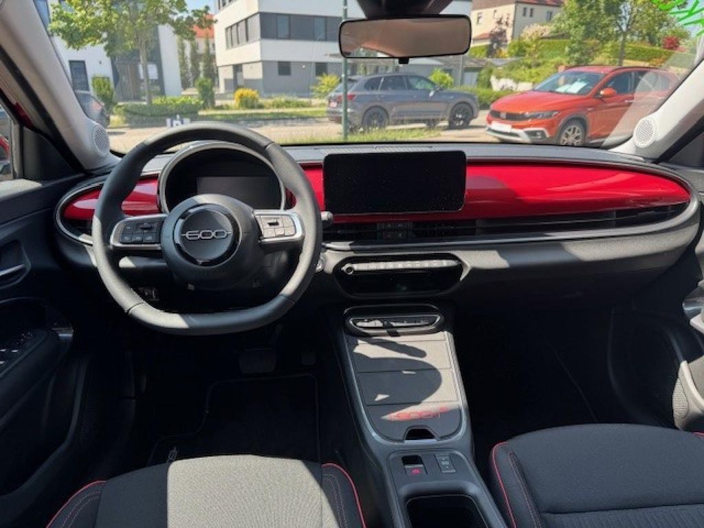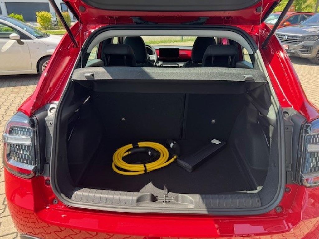 Ablagetasche an Vordersitzlehnen Airbag Beifahrerseite Airbag Fahrerseite Ambiente-Beleuchtung Antriebsart: Frontantrieb Außenspiegel elektr. verstellbar, beide Außenspiegel mit Abdeckkappen schwarz Einparkhilfe hinten Einparkhilfe vorn und hinten Elektromotor 115 kW (cont. 62 kW) Fahrassistenz-System: Aufmerksamkeits-Assistent Fahrassistenz-System: Autonomer Notbrems-Assistent (AEB) Fahrassistenz-System: Spurhalteassistent Fahrassistenz-System: Verkehrszeichenerkennung Fahrmodusschalter Fensterheber elektr. vorn mit Komfortschaltung Geschwindigkeits-Regelanlage (Tempomat) Getriebe für Elektrofahrzeug Heckleuchten LED HV-Batterie 54 kWh (Lithium-Ionen) Infotainment-System: UConnect mit DAB+ Radioempfang (Touchscreen 10,25") Innenausstattung: Dekoreinlagen Armaturenbrett, rot Instrumentenanzeige Farbdisplay, 7 Zoll Karosserie: 5-türig Klimaautomatik Komfort-Paket Kopf-Airbag-System vorn und hinten Kopfstützen hinten Ladeanschluss 11 kW Ladekabel mit Typ 2-Stecker (Mode 3) Lenkrad (Soft Touch) mit Multifunktion Mittelarmlehne vorn Nebelscheinwerfer LED Nebelscheinwerfer mit integriertem Abbiegelicht One Pedal Drive (elektronisches Gaspedal) Parkbremse elektrisch Radstand 2562 mm Rücksitzbank klappbar Scheibenwischer beheizbar Scheinwerfer LED Schnellladefunktion 100 kW Seitenairbag vorn Servolenkung elektrisch Sitz vorn links verstellbar (6-fach) Sitzbezug / Polsterung: Stoff Sitzverstellung vorn rechts (4-fach) Smartphone Schnittstelle (Apple CarPlay & Android Auto) Sonnenblenden mit Spiegel (beleuchtet) Sound-System mit 4 Lautsprecher Style-Paket Tagfahrlicht LED Türgriffe innen verchromt Uni-Lackierung USB-Anschlüsse (Typ C und Typ A) Warnanlage für Sicherheitsgurte vorn und hinten